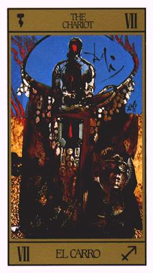 During the prevous card, The Lovers, all the wisdom of the first cards in the deck has been processed and a choice was made for personal growth. Now it's time to do something with all this baggage, to actually travel the road. A lot has been done so far, wisdoms have been accumulated and integrated into one's personality.
