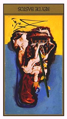 The King of Wands uses the properties of Wands (vitality, optimism, enthousiasm) to go out with confidence. He is seen as a leader with charisma.