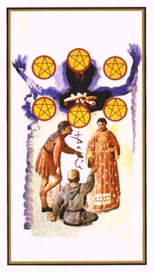 The 6 of Pentacles signals that help has arrived or will arrive soon. The number 6 represents security and reward. In the Earth element attached to Pentacles, this means material rewards are likely coming your way.