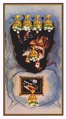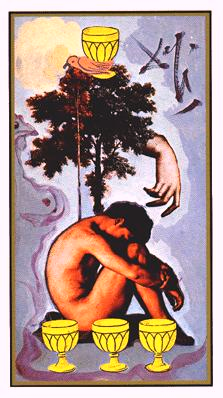 With the 4, the second cycle of this suit is commenced, where a choice between structure and feeling has to be made, where old securities have to be let go of to work towards a new future. But like Wands, Cups don't like structure much, they prefer to be free and dream rather than to make commitments and go for something.