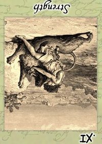 This card carries the number 11. In the Rider-Waite deck, Strength and Justice have swapped places because Waite saw links with the astrological signs Leo and Libra.