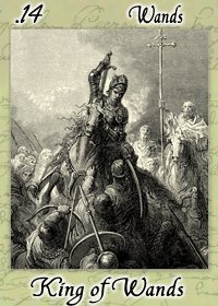 The King of Wands uses the properties of Wands (vitality, optimism, enthousiasm) to go out with confidence. He is seen as a leader with charisma.