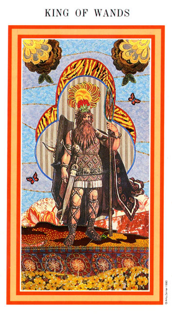 The King of Wands uses the properties of Wands (vitality, optimism, enthousiasm) to go out with confidence. He is seen as a leader with charisma.