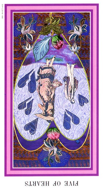 The 5 of Cups is about overcoming sadness and disappointment. You've let go of your old securities to embrace the new and exciting, now something has gone awry and you feel bad about that. But don't forget to notice those things that did go right.
