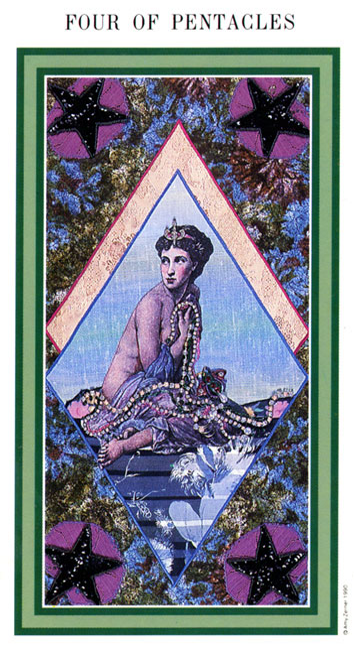 The 4 of Pentacles is about holding on to what you got. The number 4 represents structure and order, and fits well with the suit's element, Earth.