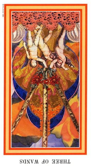 This card is about exposing your new ideas to the world. The Wand's element fire goes well with the number 3, as 3 is an output number, a number of results. Fire likes getting to results quickly.