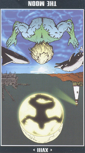 The Hermit, also a 9, closed off the upperworld. The Moon closes the underworld.