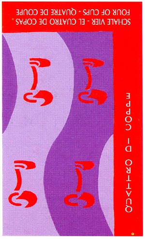 With the 4, the second cycle of this suit is commenced, where a choice between structure and feeling has to be made, where old securities have to be let go of to work towards a new future. But like Wands, Cups don't like structure much, they prefer to be free and dream rather than to make commitments and go for something.