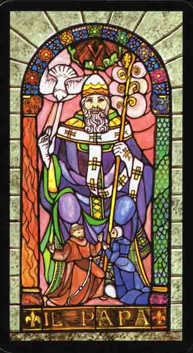 Where The Emperor is the chief of worldly power, The Hierophant is the head of spiritual matters.