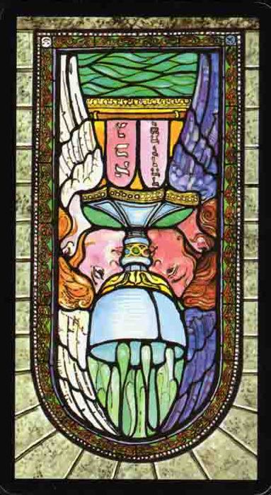 The number 1, associated with this Ace card, is the number of a fresh start with yet more new impulses coming your way. It might be compared to The Fool, the first card of the major arcana.