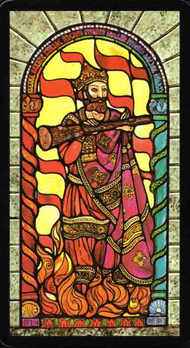 The King of Wands uses the properties of Wands (vitality, optimism, enthousiasm) to go out with confidence. He is seen as a leader with charisma.