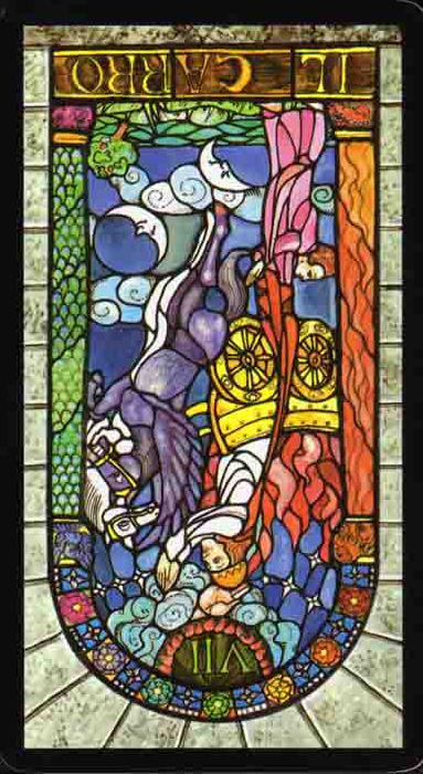 During the prevous card, The Lovers, all the wisdom of the first cards in the deck has been processed and a choice was made for personal growth. Now it's time to do something with all this baggage, to actually travel the road. A lot has been done so far, wisdoms have been accumulated and integrated into one's personality.