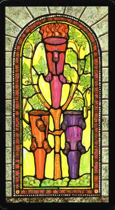 This card is about exposing your new ideas to the world. The Wand's element fire goes well with the number 3, as 3 is an output number, a number of results. Fire likes getting to results quickly.