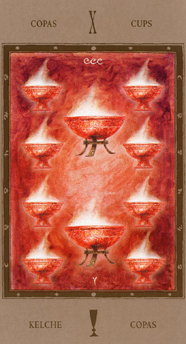 The 10 of Cups is the link to the Swords suit. It is time to leave your own emotions behind and face the world and the tasks ahead.