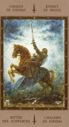 The Knight of Swords lacks the naivety of the Knight of Wands, he has analyzed the terrain ahead and weighed his options there. He knows what his own nature can throw into the mix, but does not let himself be held idle by that. The activities ahead will likely include the solving of conflicts and problems on your road to your ideal.
