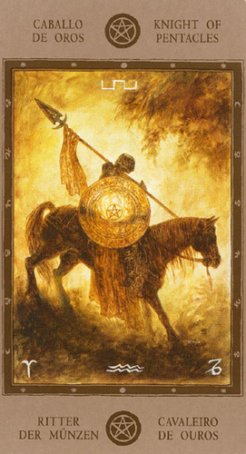The Knight of Pentacles doesn't like to get worked up about anything. He prefers to make quiet steady progress by sticking to a persevering attitude, while not allowing himself to become exhausted or stressed.
