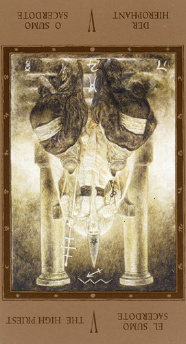 The Hierophant carries the number 5. This is the number connected to humans. 5 senses, 5 limbs (including the head), 5 fingers on a hand, 5 toes on a foot.