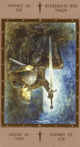 The King of Swords rules with diplomacy and a strong sense of responsibility, not just for himself but also for those around him, yet he is not afraid to make heavy decisions that compel him to eliminate dangers and dangerous opponents with some force.