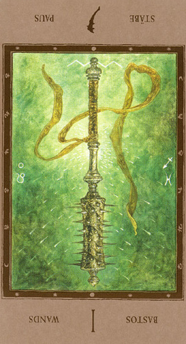 The ace of wands represents the beginning of an idea. The element fire and the number 1 give a powerful combination: enterprise and new beginnings apply to both. This is an energetic combination, which is why the card is generally considered a positive one. Spring is the season associated with this card.