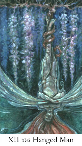 First you learned that you're not a plaything of fate, that you can make your own choices. Then you've learned how to fend for yourself and face yourself. Now, at The Hanged Man, you can learn to let go. You no longer have to cling to old values. You've found strength in yourself and by letting go, you allow growth.
