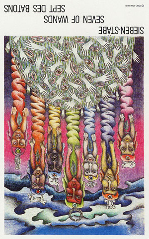 With the 7 of Wands, the striving cycle starts. It is about having the determination to complete your ideas, despite the fact that that might cause you some discomfort.