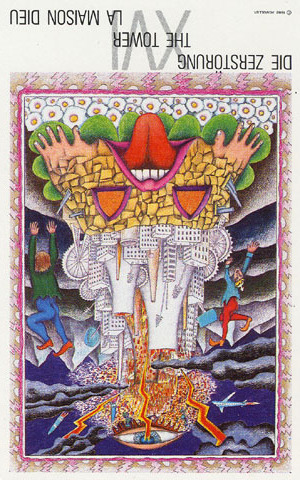 The card of The Tower goes by different names in different Tarot games. Some call it The Tower of Destruction, or The House of God, or Tower of the Light.