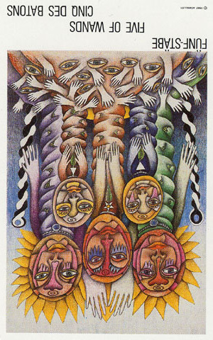 The 5 of Wands represents competition. The 5 is the second assignment number, and therefore a difficult card. 5 combined with the Wand's element fire challenges you. You'll have to fight hard for your idea, but you stand a good chance of succeeding.
