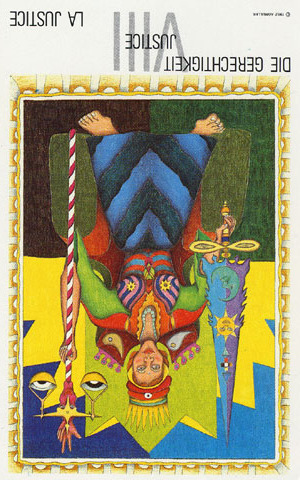 In the Rider-Waite deck, the cards for Justice and Strenght have swapped places, because Waite saw links between the cards and the astrological signs Leo and Libra.