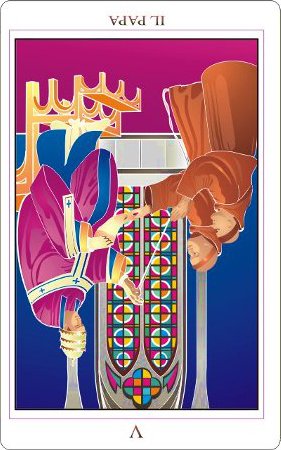 Where The Emperor is the chief of worldly power, The Hierophant is the head of spiritual matters.
