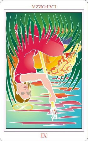 This card carries the number 11. In the Rider-Waite deck, Strength and Justice have swapped places because Waite saw links with the astrological signs Leo and Libra.