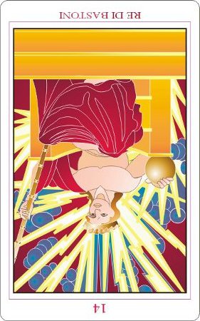 The King of Wands uses the properties of Wands (vitality, optimism, enthousiasm) to go out with confidence. He is seen as a leader with charisma.
