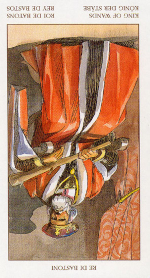 The King of Wands uses the properties of Wands (vitality, optimism, enthousiasm) to go out with confidence. He is seen as a leader with charisma.