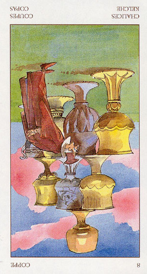8 is an assignment number, and in the suit of Cups, it is about overcoming the urge to sink into depression caused by view on the long road ahead.