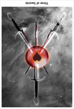 If a card is upside down, that is the common notation for the opposite meaning of the card, also known as the "negative" or "reversed" meaning of the card.