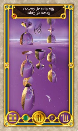 The 7 of Cups is about making a choice between different ideals. But Cups, with the water element, don't like making definitive choices that much, making this 7 in this suit a bit of a hard choice.