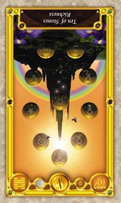 The 10 of Pentacles represents material posessions. The number 10 of Pentacles forms the links to the Ace (first card) of Wands (the first suit in the minor Arcana), and thus prepares to bring you back to the beginning of the minor Arcana, ready for a next cycle through the tarot.