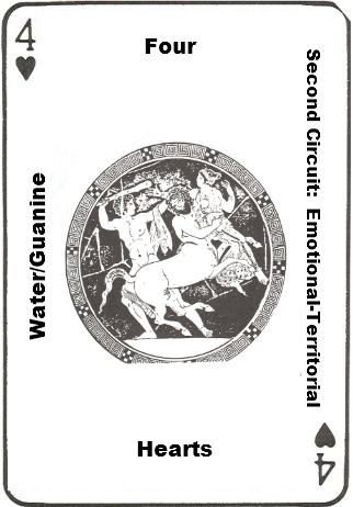 With the 4, the second cycle of this suit is commenced, where a choice between structure and feeling has to be made, where old securities have to be let go of to work towards a new future. But like Wands, Cups don't like structure much, they prefer to be free and dream rather than to make commitments and go for something.