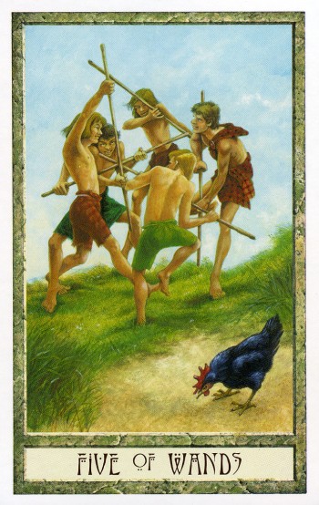 The 5 of Wands represents competition. The 5 is the second assignment number, and therefore a difficult card. 5 combined with the Wand's element fire challenges you. You'll have to fight hard for your idea, but you stand a good chance of succeeding.