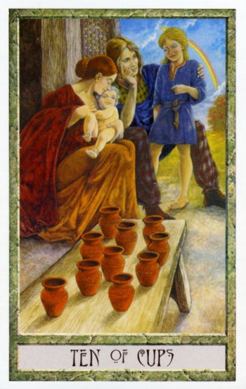 The 10 of Cups is the link to the Swords suit. It is time to leave your own emotions behind and face the world and the tasks ahead.