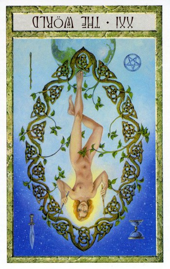 This card falls when you've completed all assignments, overcome all obstacles and are completely at peace with yourself due to your accomplishments. Yet Tarot wouldn't be Tarot if it didn't challenge you to enter entirely new worlds and start the process all over again.