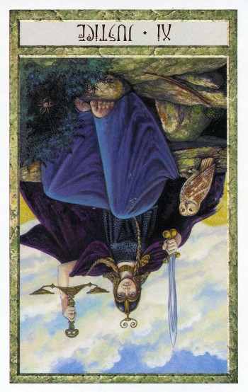 This card carries the number 11. In the Rider-Waite deck, Strength and Justice have swapped places because Waite saw links with the astrological signs Leo and Libra.