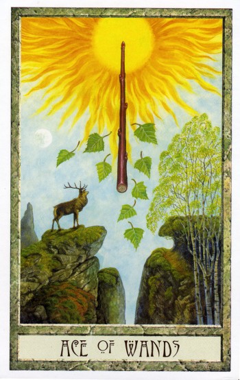 The ace of wands represents the beginning of an idea. The element fire and the number 1 give a powerful combination: enterprise and new beginnings apply to both. This is an energetic combination, which is why the card is generally considered a positive one. Spring is the season associated with this card.