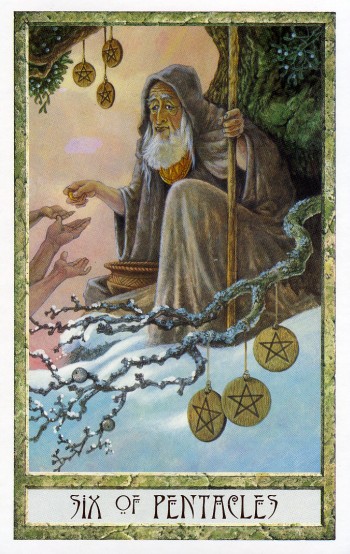 The 6 of Pentacles signals that help has arrived or will arrive soon. The number 6 represents security and reward. In the Earth element attached to Pentacles, this means material rewards are likely coming your way.