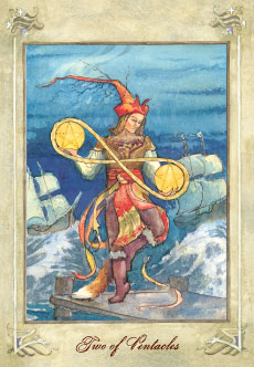 The 2 of Pentacles is an assignment number card, and the assignment here is to maintain a happy and relaxed attitude during a wait for results of what you started.