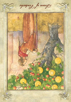 This card carries the number 11. In the Rider-Waite deck, Strength and Justice have swapped places because Waite saw links with the astrological signs Leo and Libra.