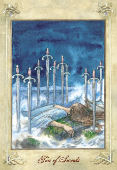 The 10 of Swords is about saying final goodbye to things or people that are bad to you.