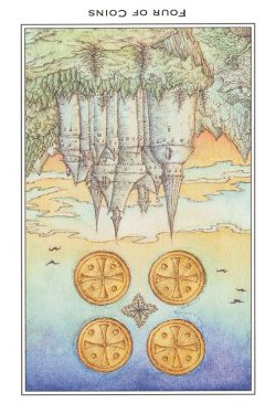 The 4 of Pentacles is about holding on to what you got. The number 4 represents structure and order, and fits well with the suit's element, Earth.