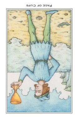 The Page of Cups is about cautiously exploring your own emotions (about the course ahead).