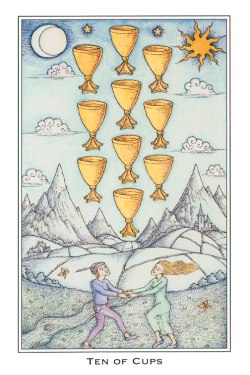The 10 of Cups is the link to the Swords suit. It is time to leave your own emotions behind and face the world and the tasks ahead.