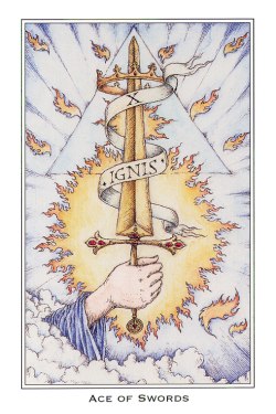 The ace of wands represents the beginning of an idea. The element fire and the number 1 give a powerful combination: enterprise and new beginnings apply to both. This is an energetic combination, which is why the card is generally considered a positive one. Spring is the season associated with this card.